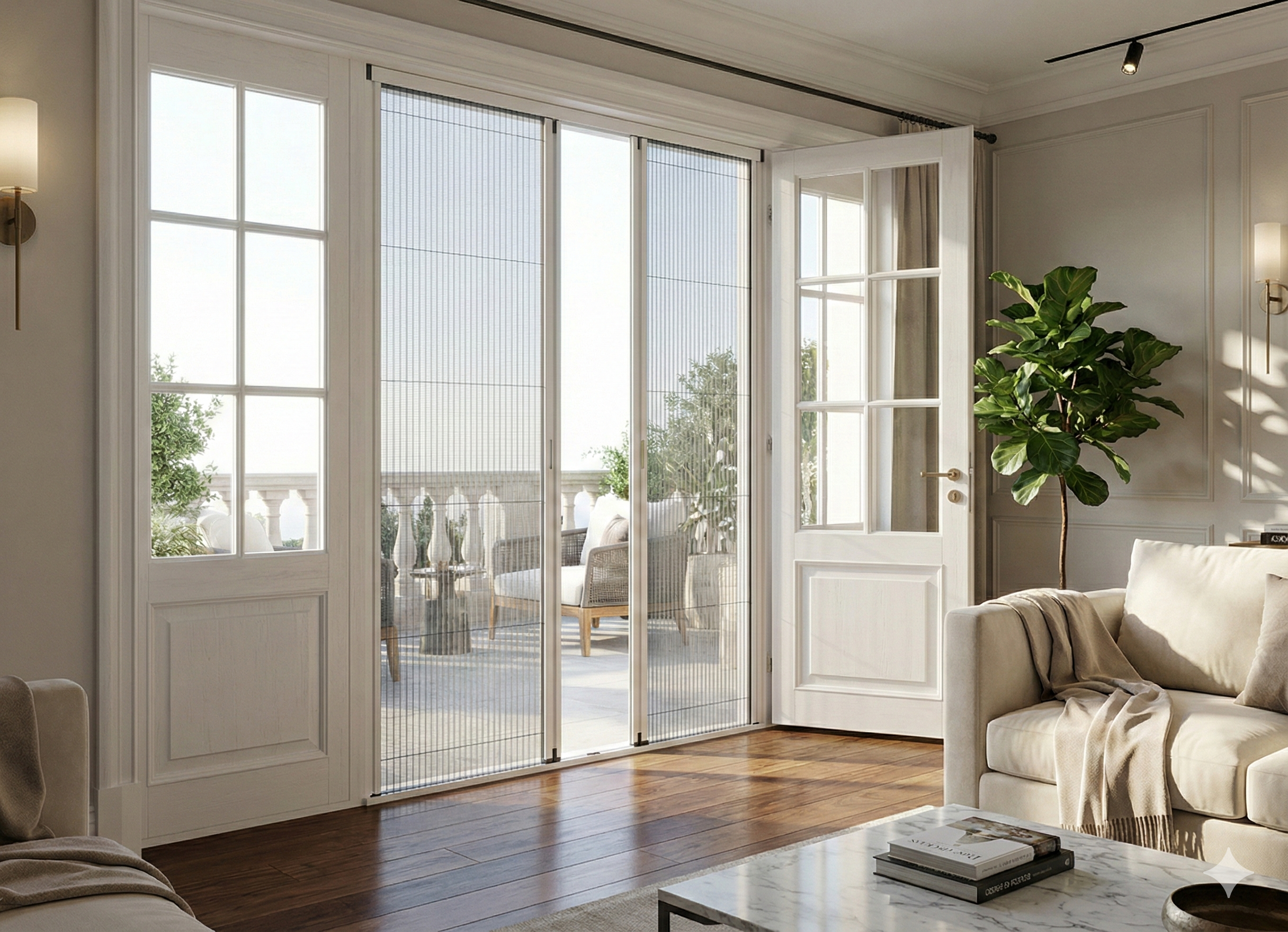 Heb je openslaande deuren, een brede schuifpui of een prachtige tuinkamer? Dan zoek je een hordeur die niet alleen insecten weert, maar ook past bij de uitstraling van je woning. De Royal 32 Dubbele Deur is speciaal ontwikkeld voor deze grote openingen. Met een maximale breedte van maar liefst 5 meter koppel je binnen en buiten naadloos aan elkaar, zonder in te leveren op comfort of design.